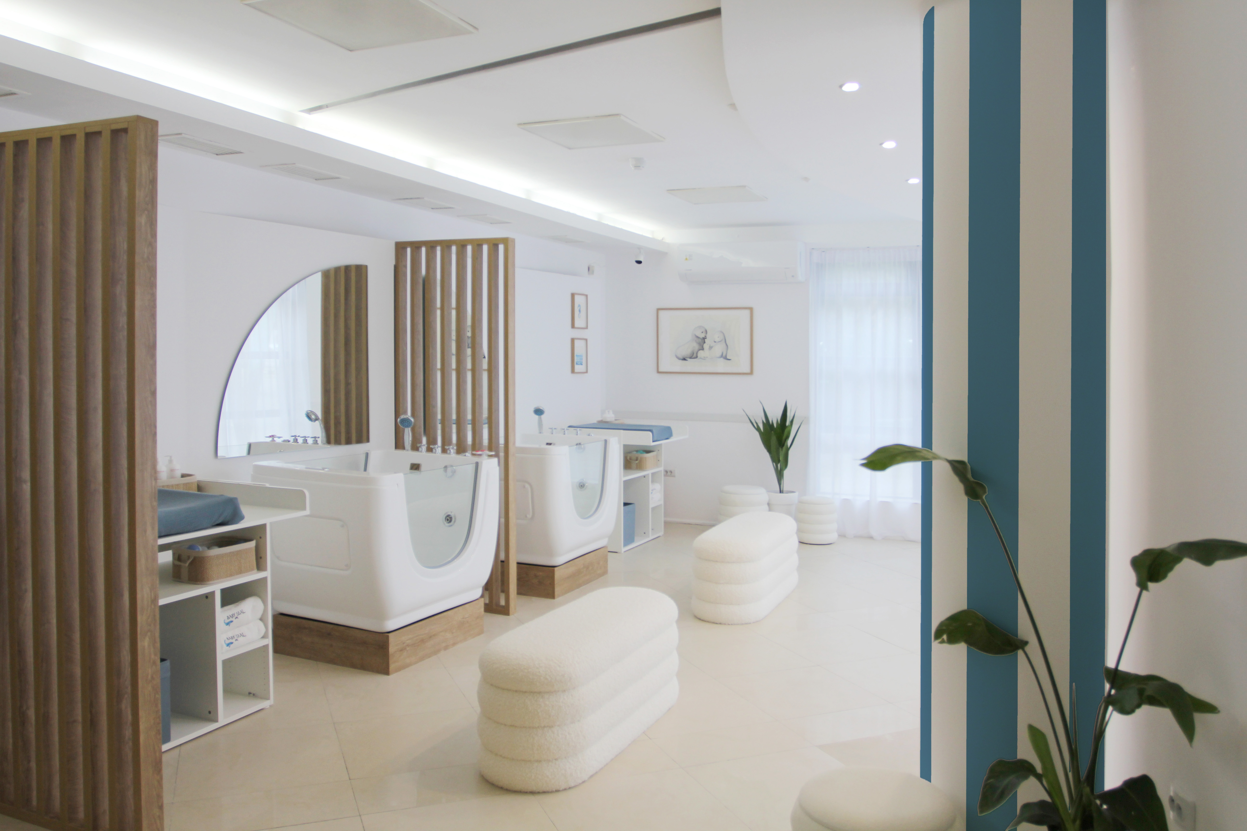 Бутиков бебешки спа център за плаване в хидромасажна вана, масажи и гимнастика за
