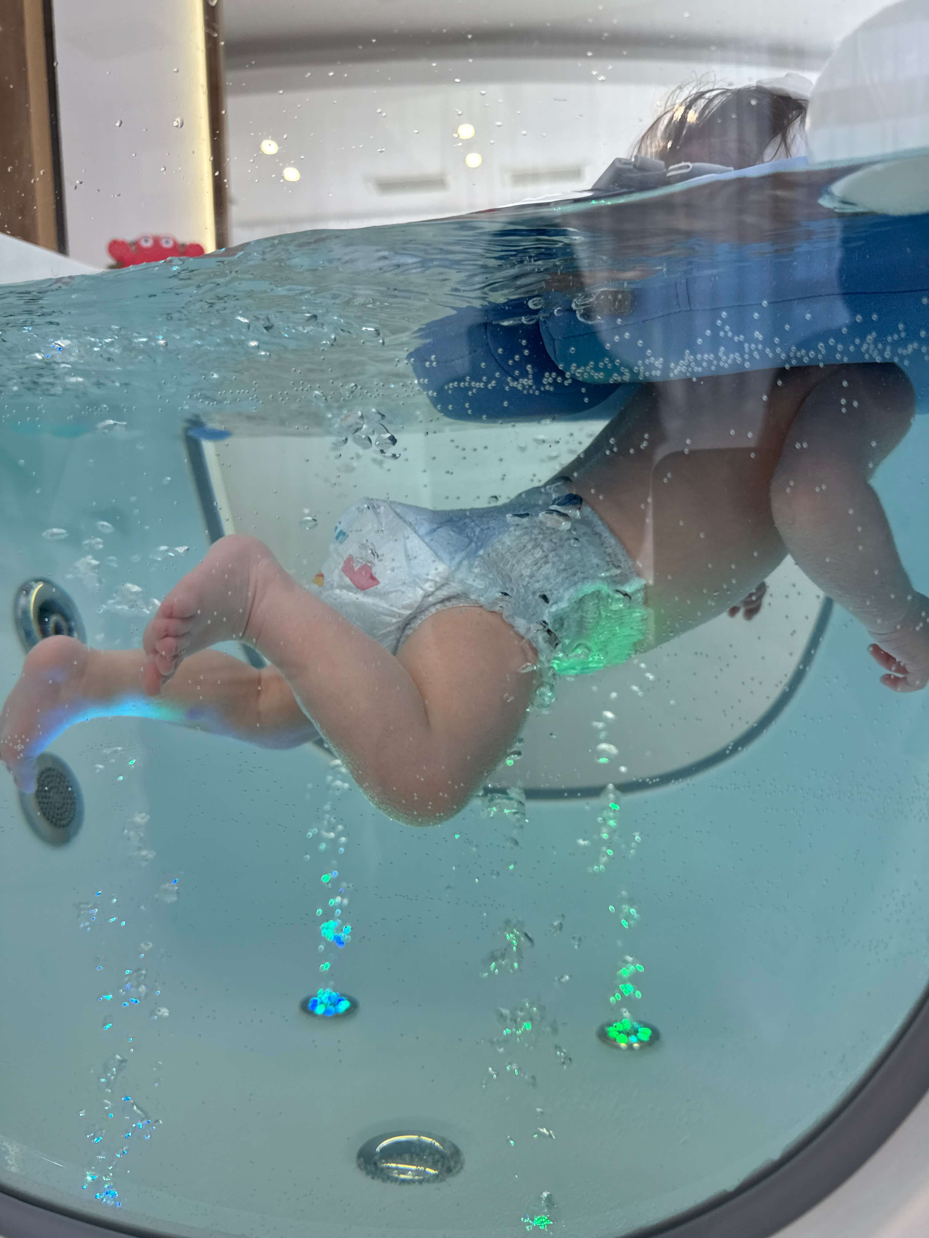 Вашето бебе плава в специална вана с пречистена вода чрез озониране